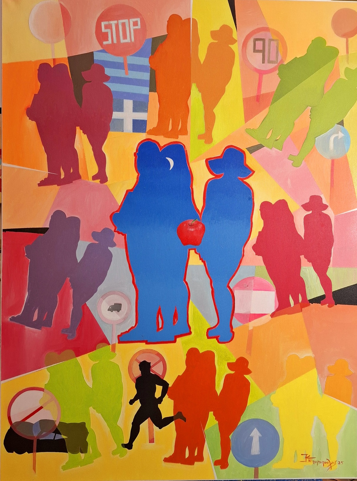 Πώς καταφέρνει να συνδυάσει τον Κοπέρνικο με τον Νεύτωνα, την Ιερά Εξέταση με τις αυθεντίες και της Εκκλησίας και του Κράτους και τον Πόπερ με τον Κενό Χώρο, (“πρέπει να εισχωρήσουμε στο μυστικό του δημιουργείν ενός καλλιτέχνη για να καταλάβουμε το δημιούργημά του το οποίο γεμίζει τον κενό χώρο”, λέει κάπου) τον Κάντ με τον Πικάσο, μόνο ο Σπυρόπουλος θα μπορούσε να το κάνει και μόνο βλέποντας το έργο του κατανοεί κανείς πόσο όλα αυτά τα ιδεολογικά, φιλοσοφικά, θεολογικά, πολιτικά και επιστημονικά συστήματα και επιτεύγματα έχουν βαθύτατα επηρεάσει τη σκέψη του, έχουν συνθέσει την προσωπικότητά του, έχουν επιδράσει στην αναζήτηση και εύρεση της ιδιάζουσας στιλιστικής του έκφρασης και κατ’ επέκταση και σε όλο το πολυάριθμο έργο του …